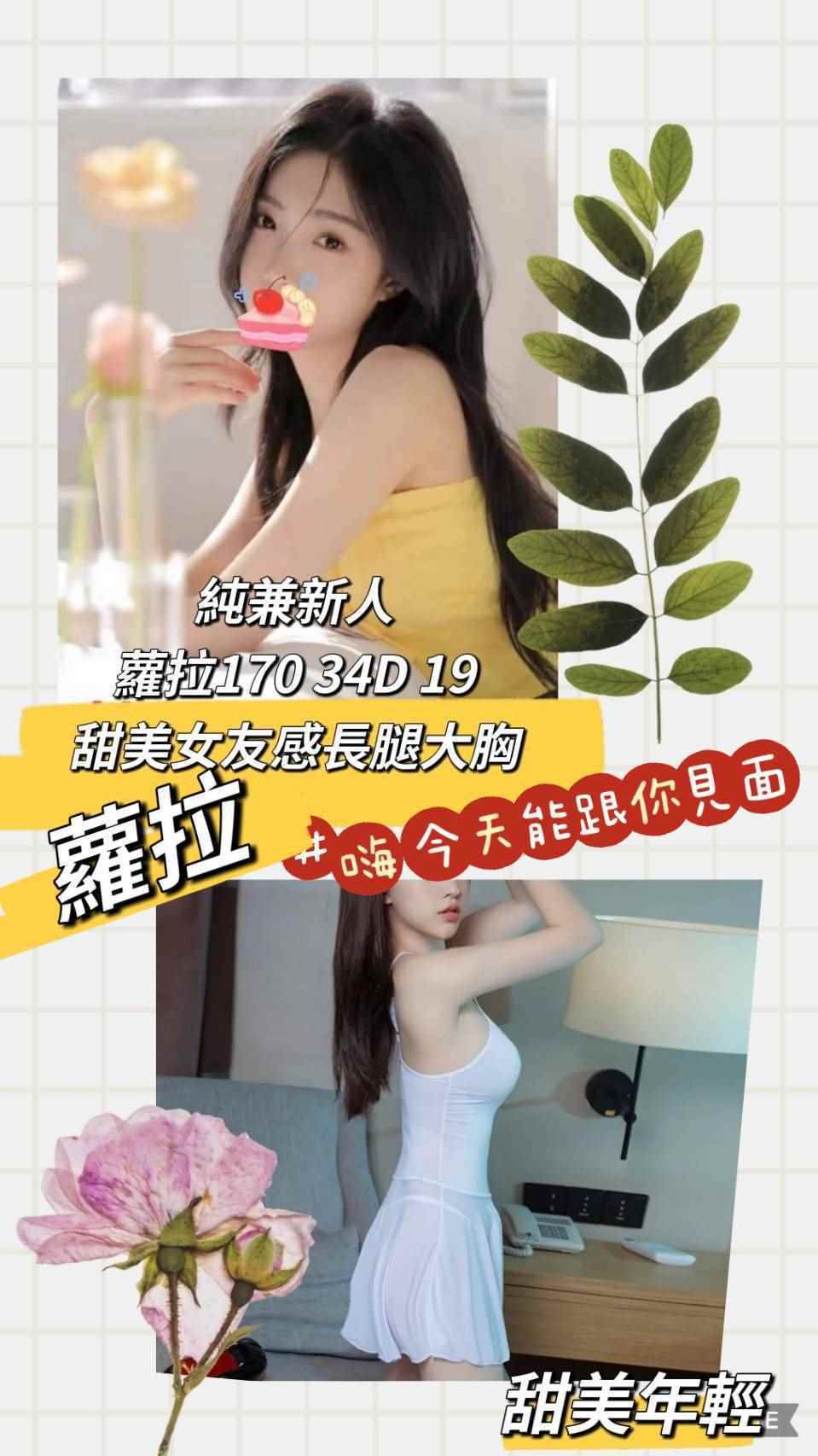 蘿拉 新北市 台北市 外送 19歲 D罩杯 170/45