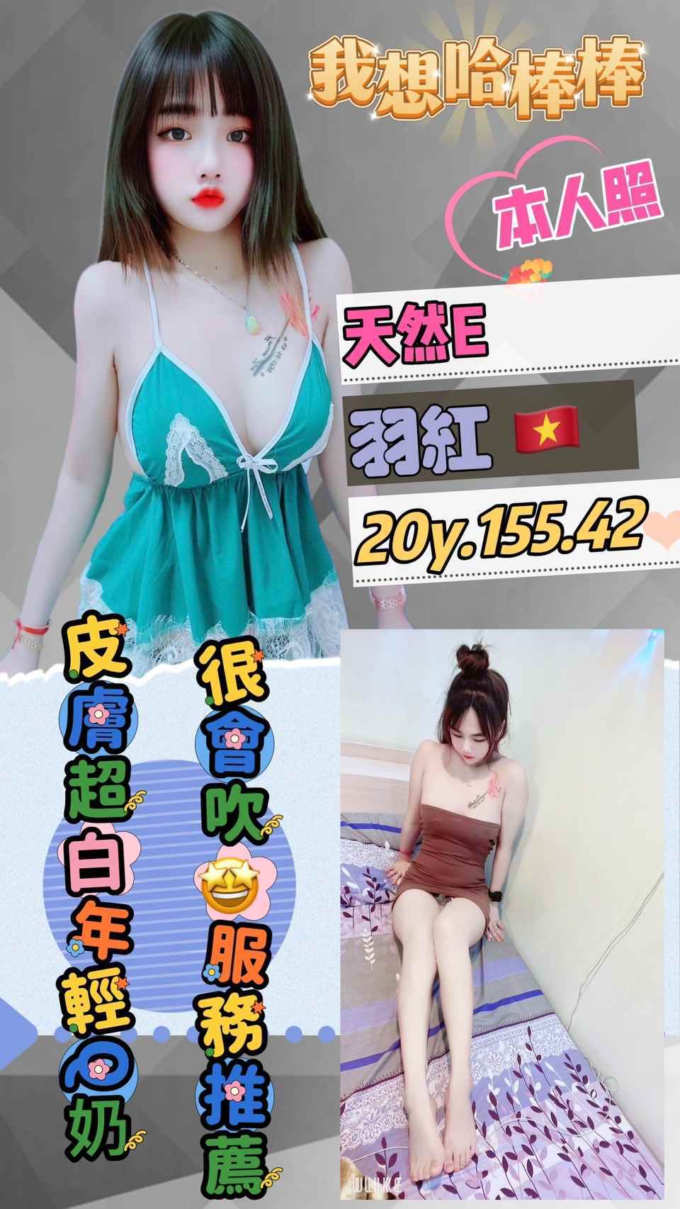 羽紅 桃園市 定點 20歲 E罩杯 155/42